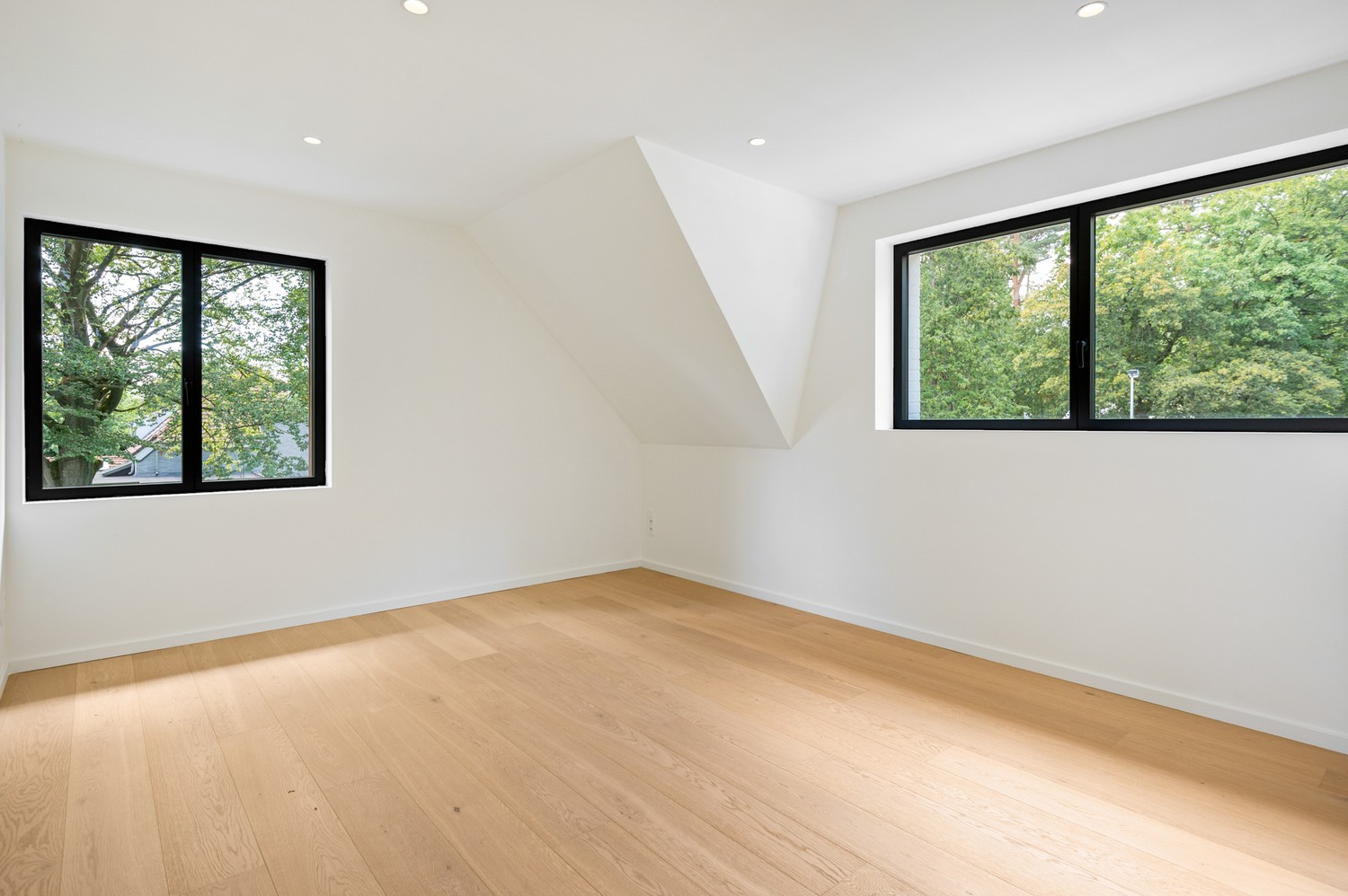 Op de tussenverdieping bevindt zich een eerste ruime slaapkamer. De eerste verdieping omvat een royale badkamer met maatwerkmeubilair, ligbad, riante inloopdouche en eveneens ingebouwd speakersysteem. Verder zijn hier nog drie slaapkamers aanwezig, evenals een afzonderlijk gastentoilet. Vanuit de nachthal biedt een vlizotrap toegang tot de zolder.
